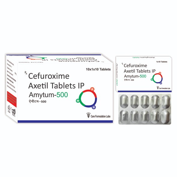 - Each Film coated tablet contains: Cefuroxime Axetil IP equivalent to Cefuroxime 500mg